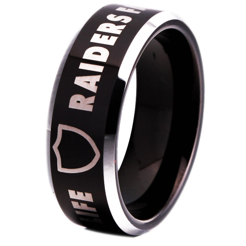 Oakland Raiders Ring 8mm Black Tungsten Wedding Ring Size 4 - 17 #Raid – Exclusive Inspirations