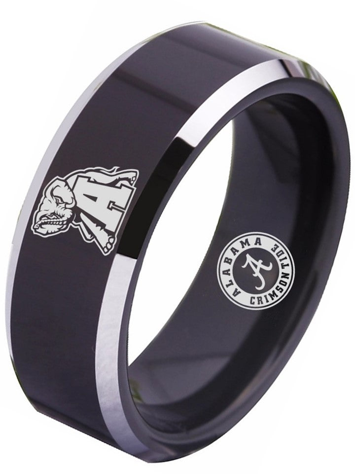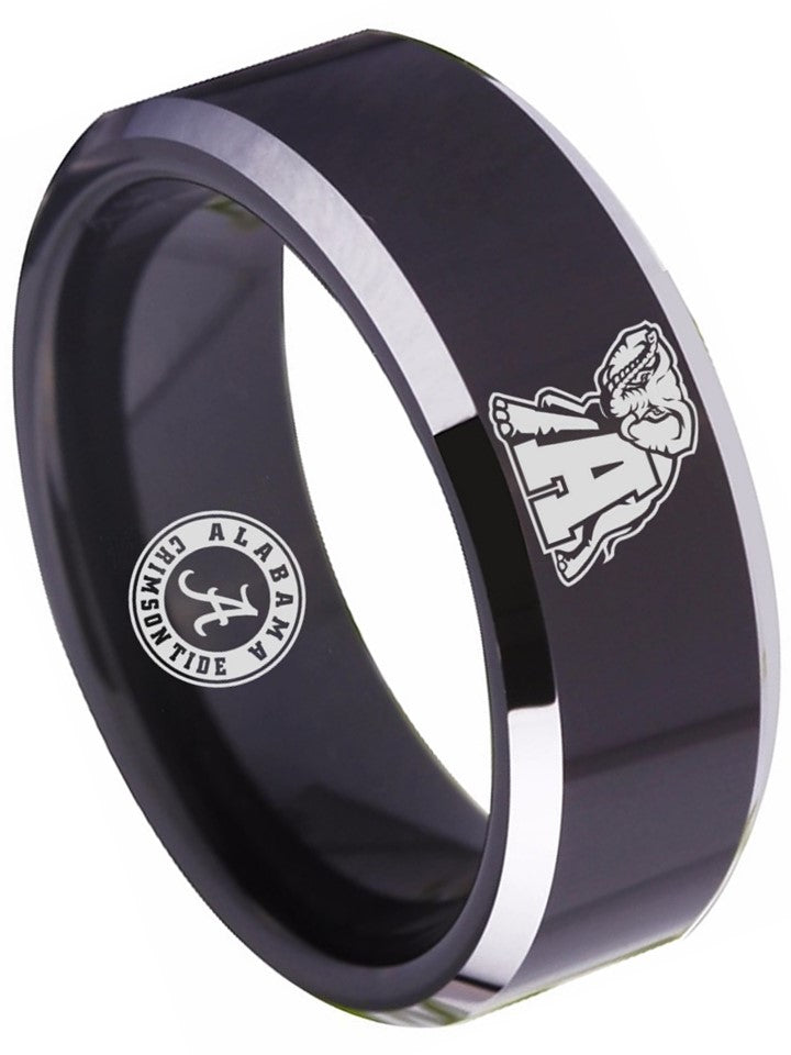Alabama Crimson Tide Ring 8mm Black Tungsten Roll Tide Ring 4 - 17 NCAA