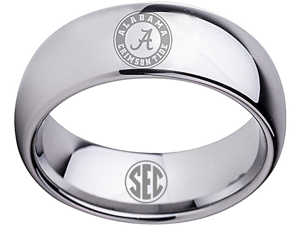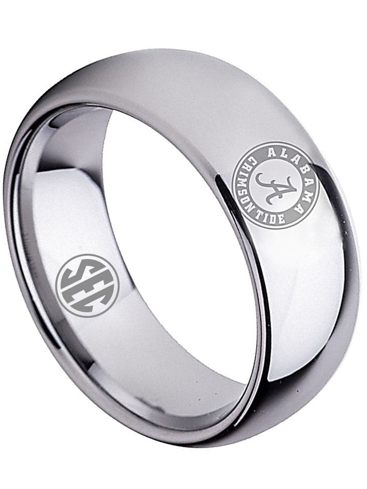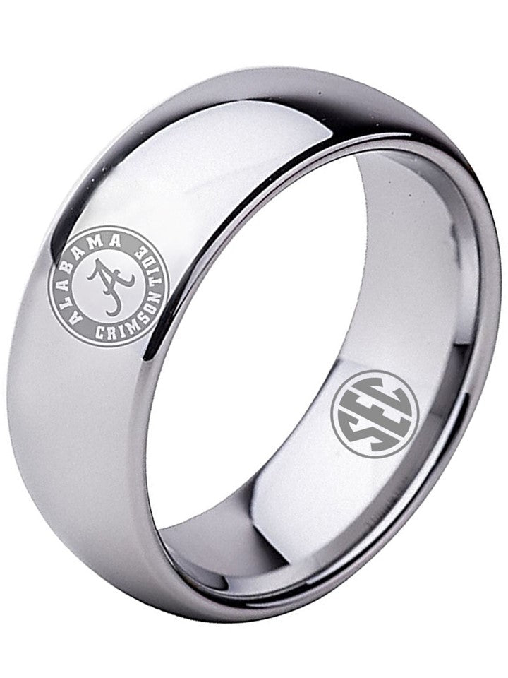 Alabama Crimson Tide Ring Wedding Band 8mm Silver Tungsten Wedding Ring Sz 5 - 16