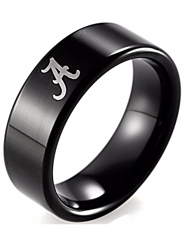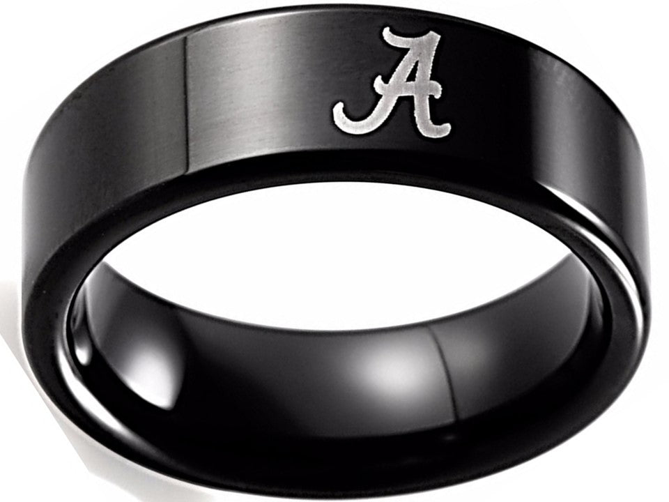 Alabama Crimson Tide Ring Wedding Ring 8mm Black Tungsten Wedding Band Sz 6 - 13