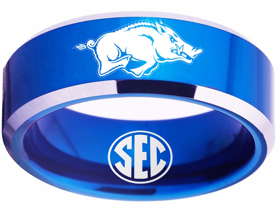 Arkansas Razorbacks Ring Blue Ring Tungsten Ring #arkansas #razorbacks