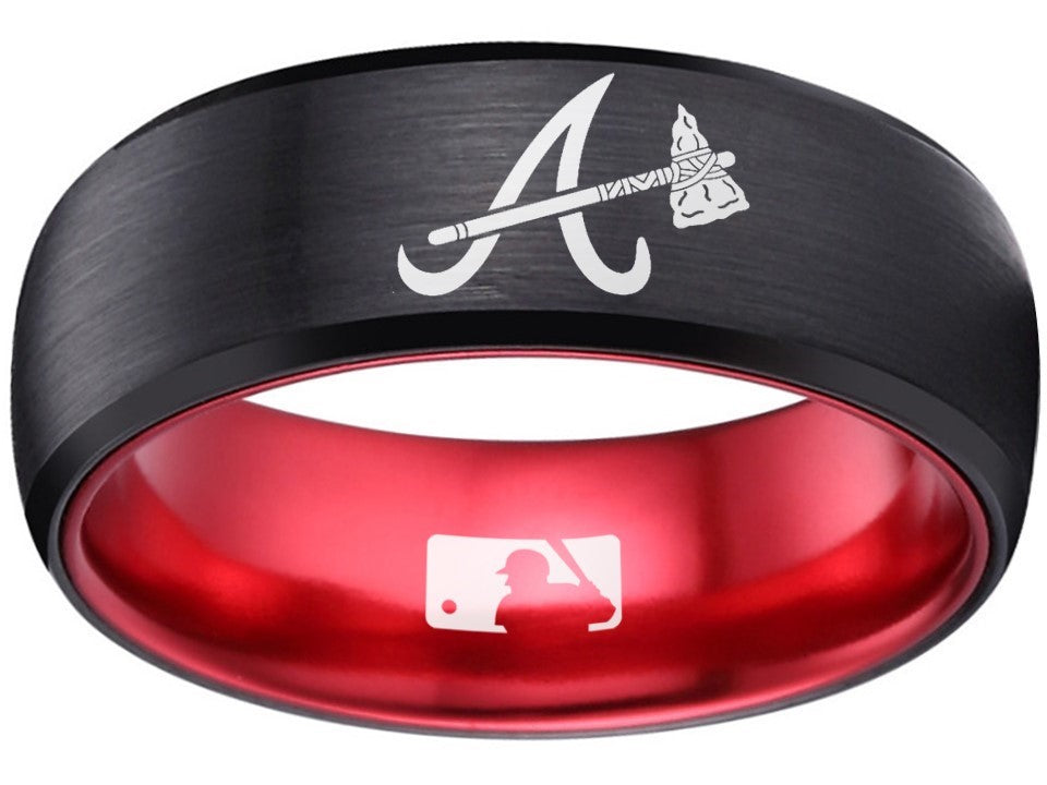 Atlanta Braves Ring Braves Logo Ring Black and Red MLB Wedding Band #braves