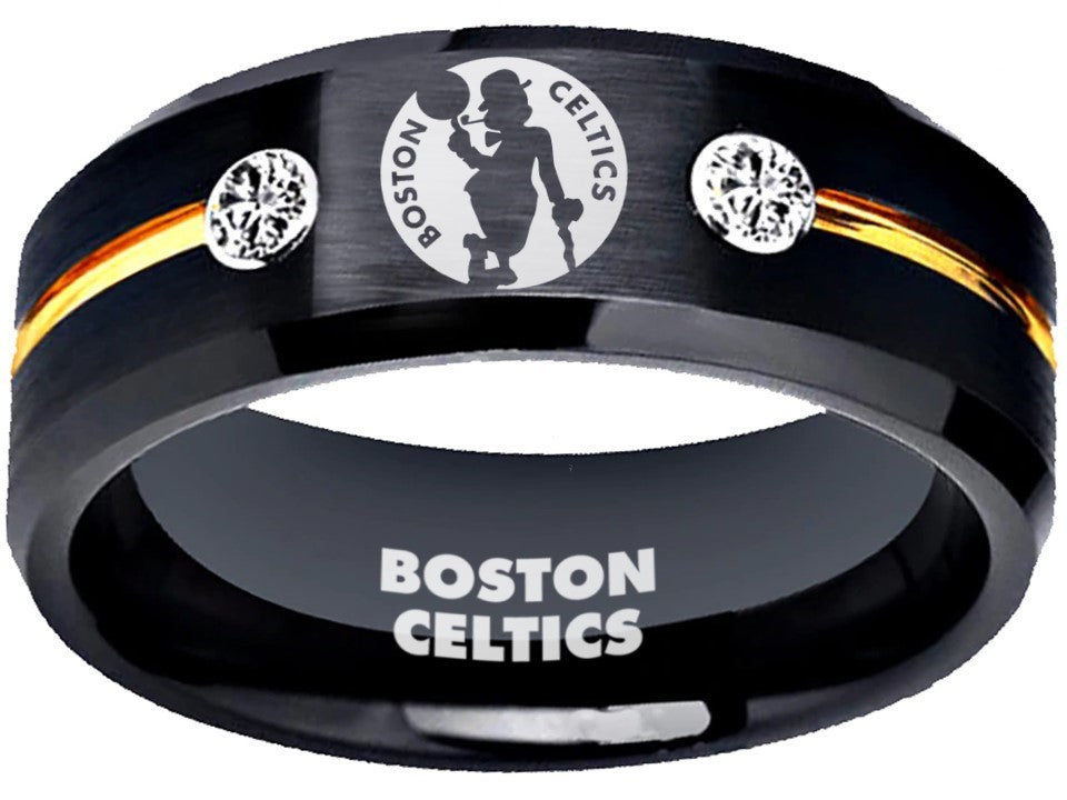 Boston Celtics Ring Black & Gold CZ Wedding Ring Sizes 6-13 #celtics