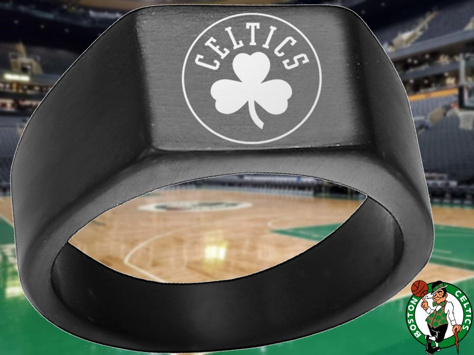 Boston Celtics Ring Clover Black 10mm Ring Sizes 8-12 #boston #celtics