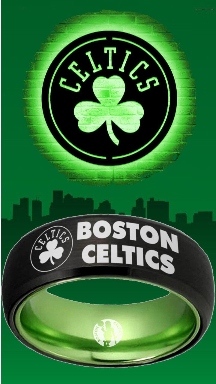 Boston Celtics Ring Clover Black & Green Wedding Ring Sizes 6-13 #celtics #nba