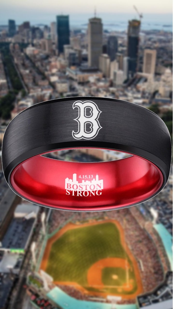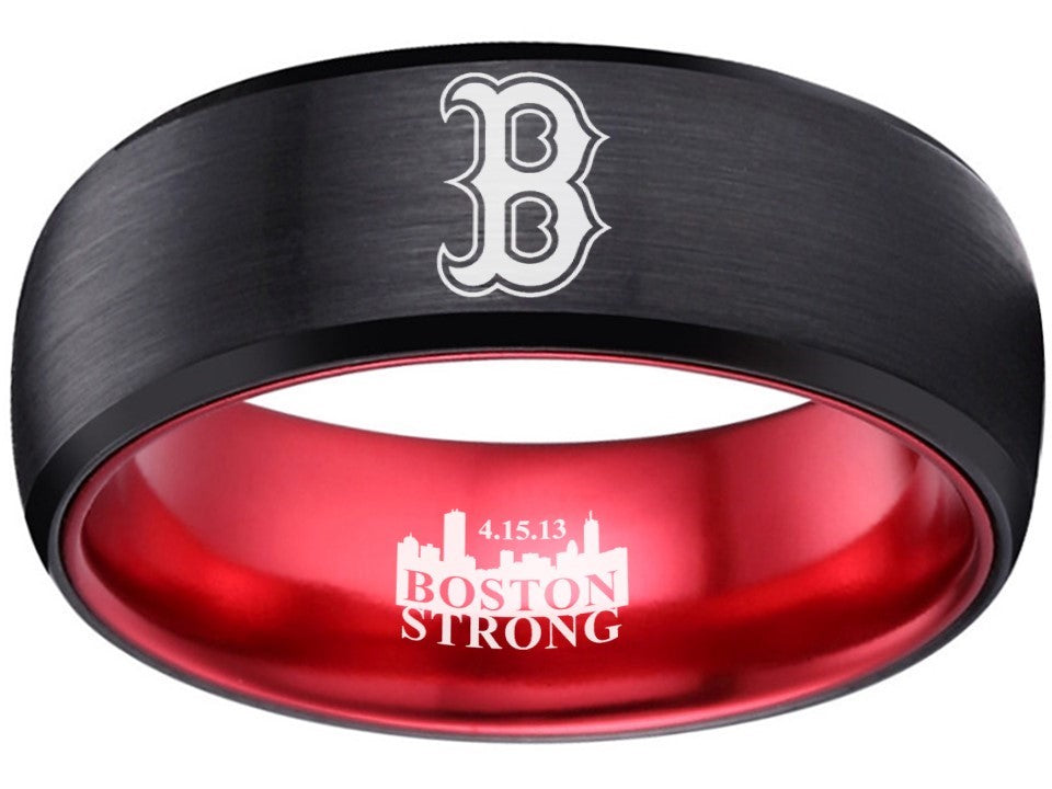 Boston Red Sox Ring Black & Red Wedding Ring Boston Strong Sizes 6 - 13