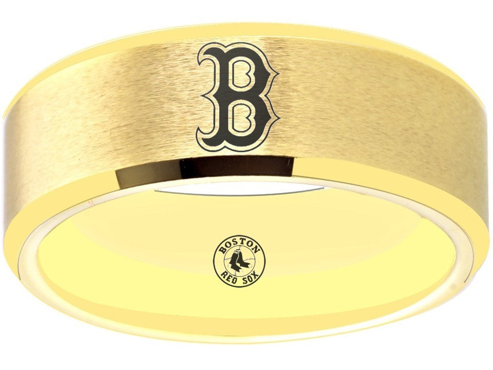 Boston Red Sox Ring Red Sox Wedding Ring Matte Gold Sizes 6 - 13 – Exclusive Inspirations