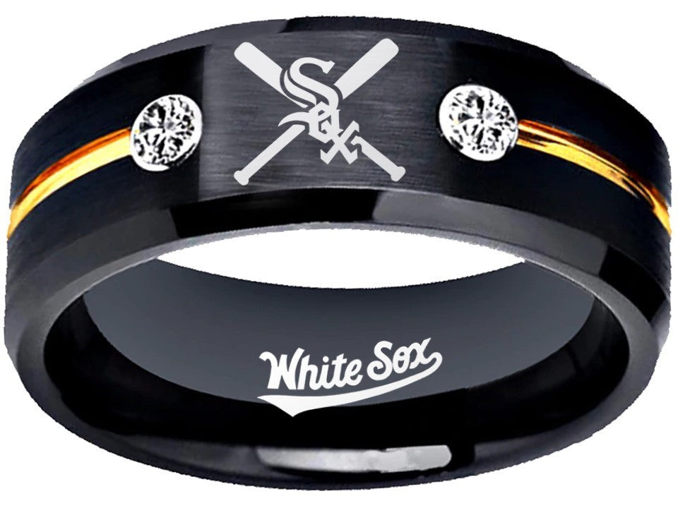 Chicago White Sox Ring Black & Gold CZ Wedding Ring Sizes 6 - 13 #whitesox #mlb