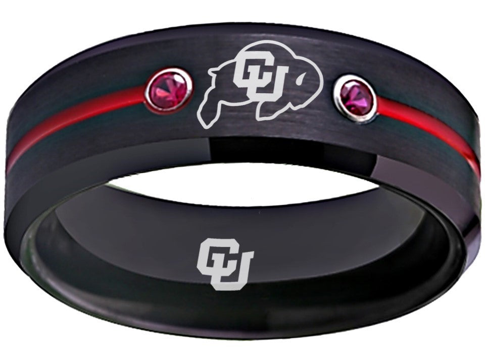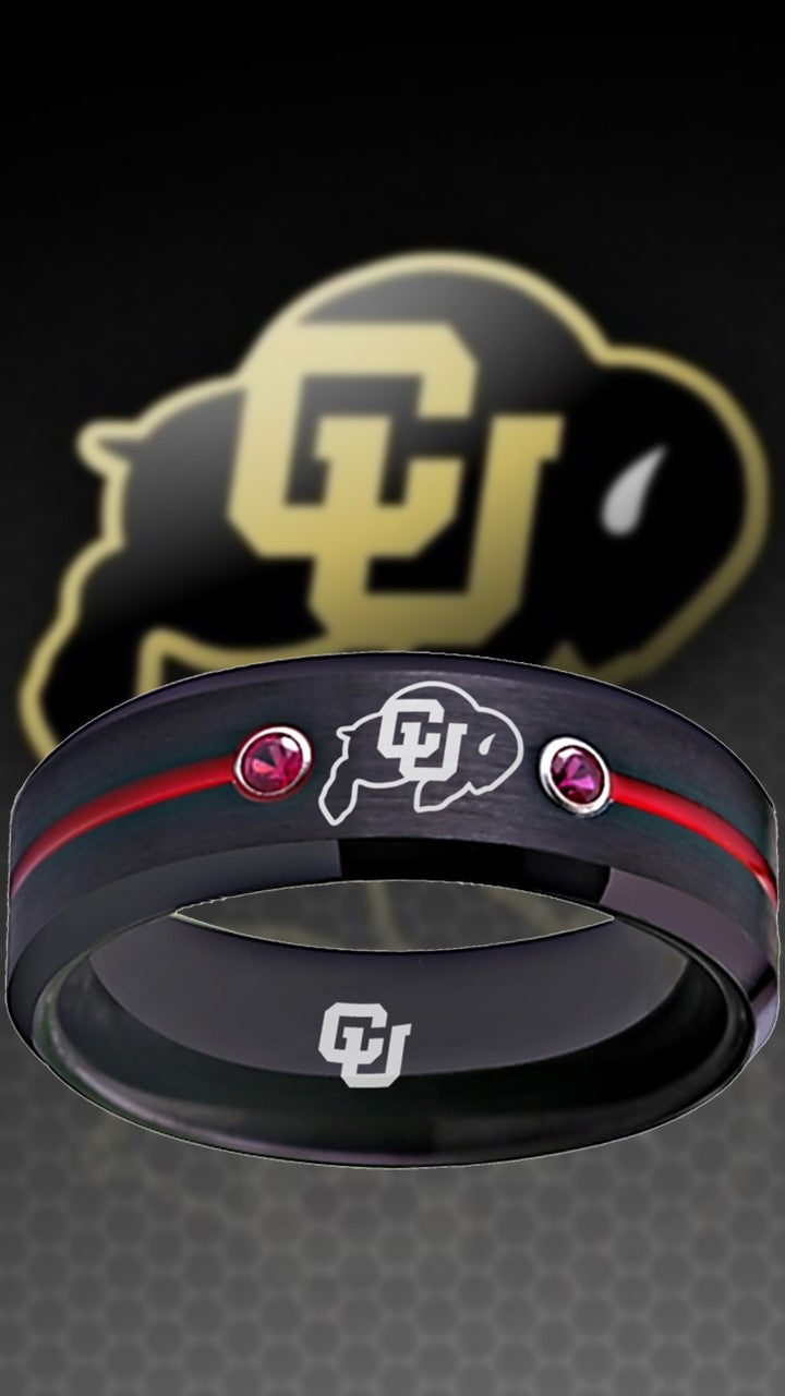 Colorado Buffaloes Ring Black & Red CZ Wedding Band | Sizes 6-13 #buffs #ncaa