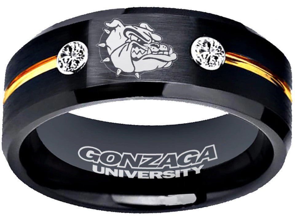 Gonzaga Bulldogs Ring Black & Gold CZ Wedding Ring Sizes 6 - 13 #gonzaga #bulldogs