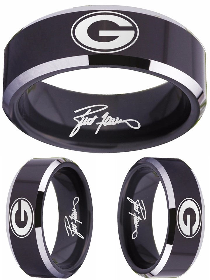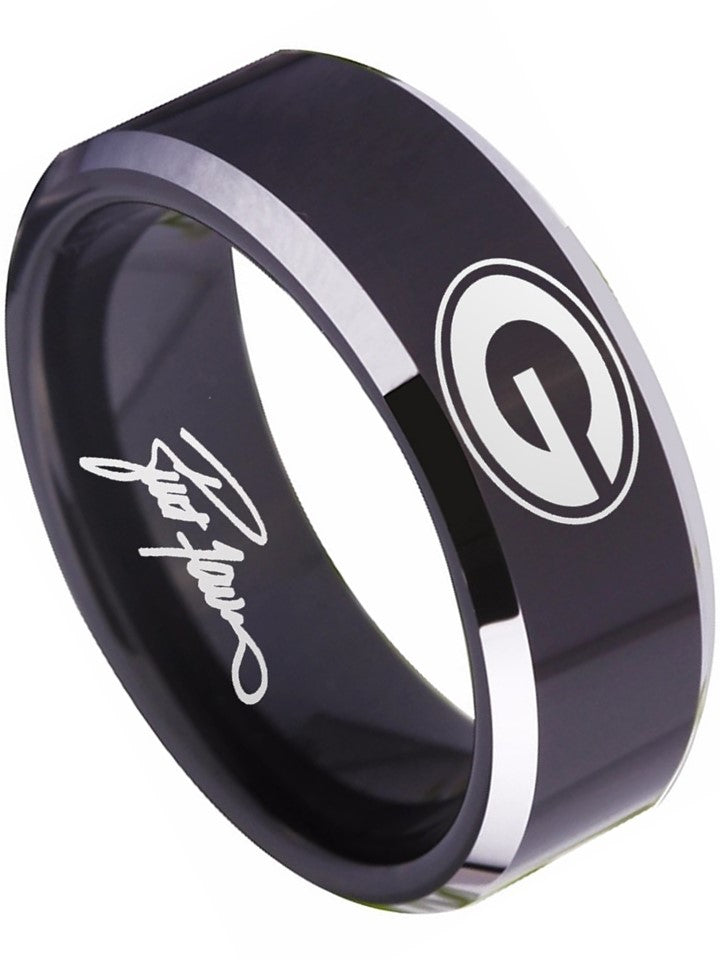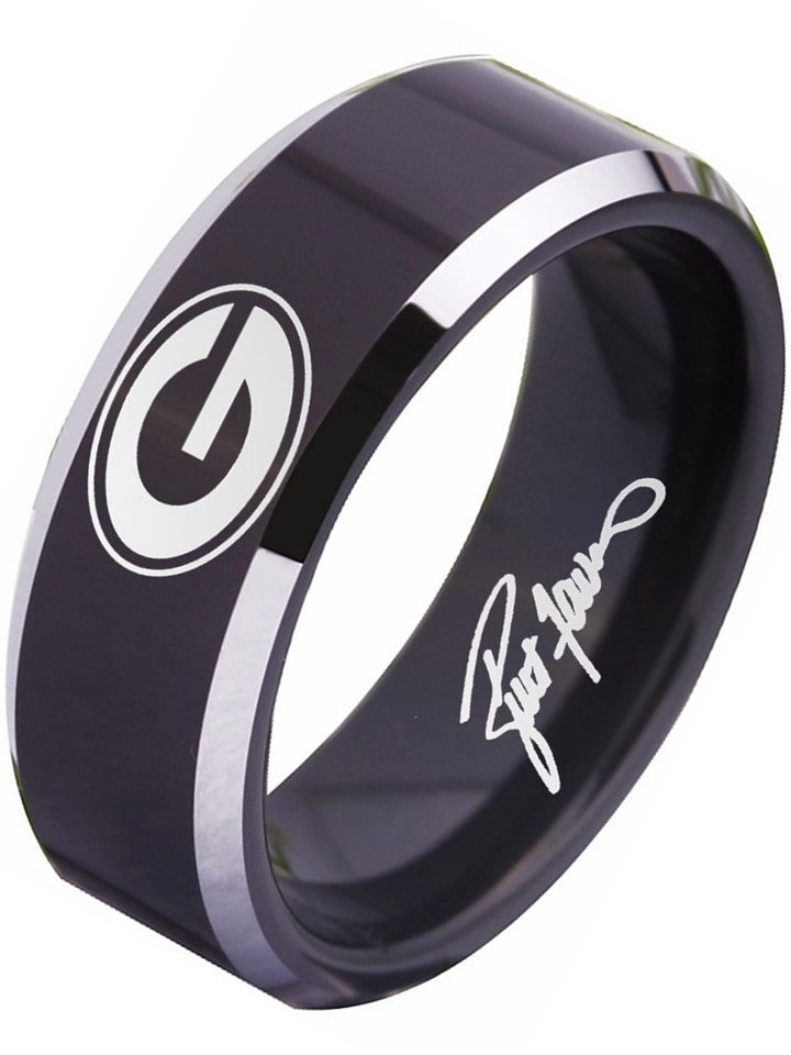 Green Bay Packers Ring | Black & Silver Wedding Band | Sizes 4-17