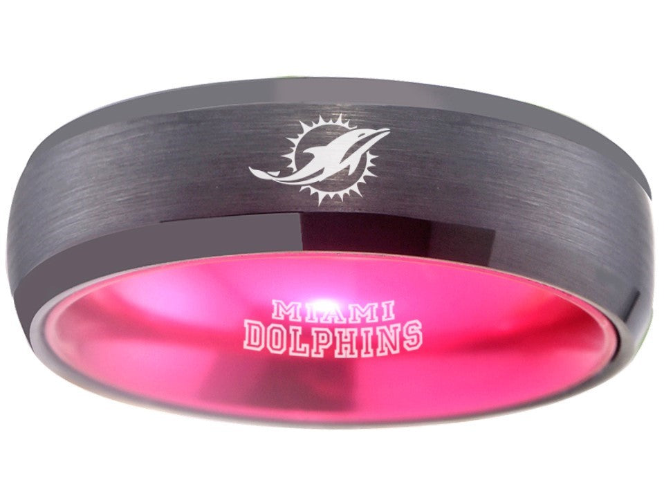 Miami Dolphins Ring Black & Pink Tungsten Wedding Ring #miami #dolphins #miamidolphins