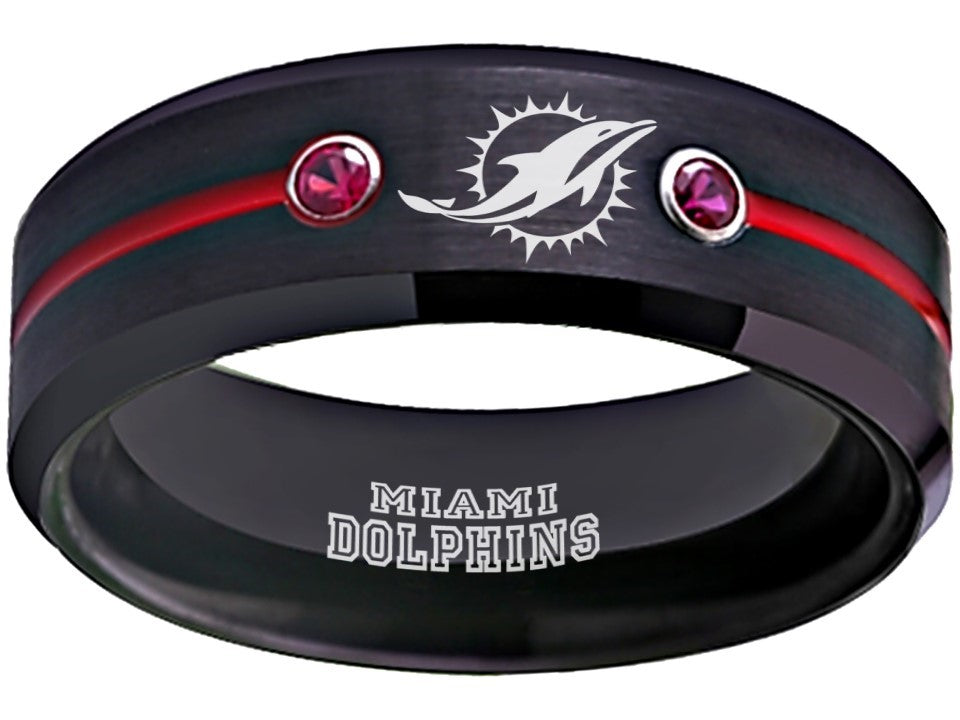 Miami Dolphins Ring Black & Red CZ Tungsten Wedding Ring #miami #dolphins #miamidolphins