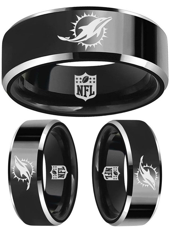 Miami Dolphins Ring | Black & Silver Wedding Ring| Sizes 4-17 – Exclusive Inspirations