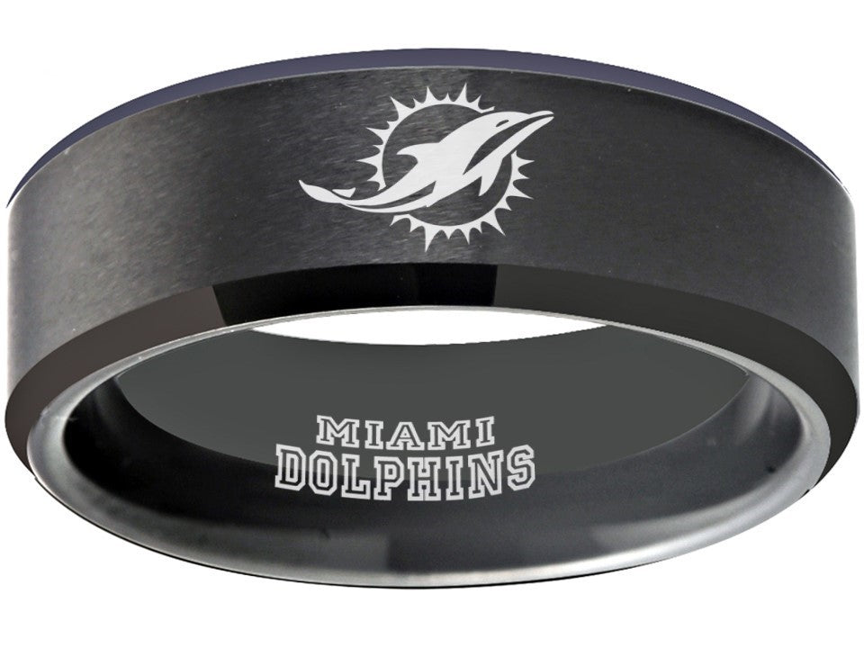 Miami Dolphins Ring matte Black Tungsten Wedding Ring #miami #dolphins #miamidolphins