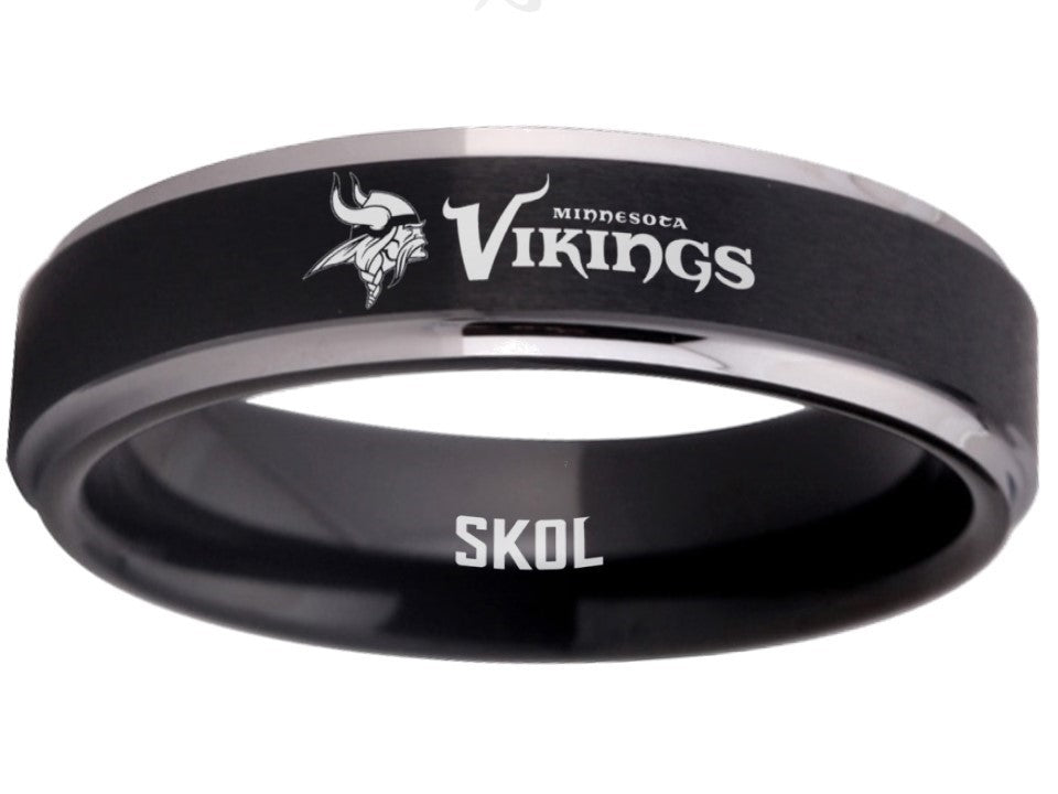Minnesota Vikings Ring Black & Silver Wedding Band 6mm | Sizes 5-13 – Exclusive Inspirations