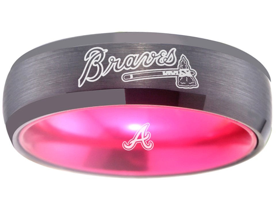 Atlanta Braves Ring Black & Pink Tungsten Wedding Ring Sizes 6 - 13 #atlanta #braves
