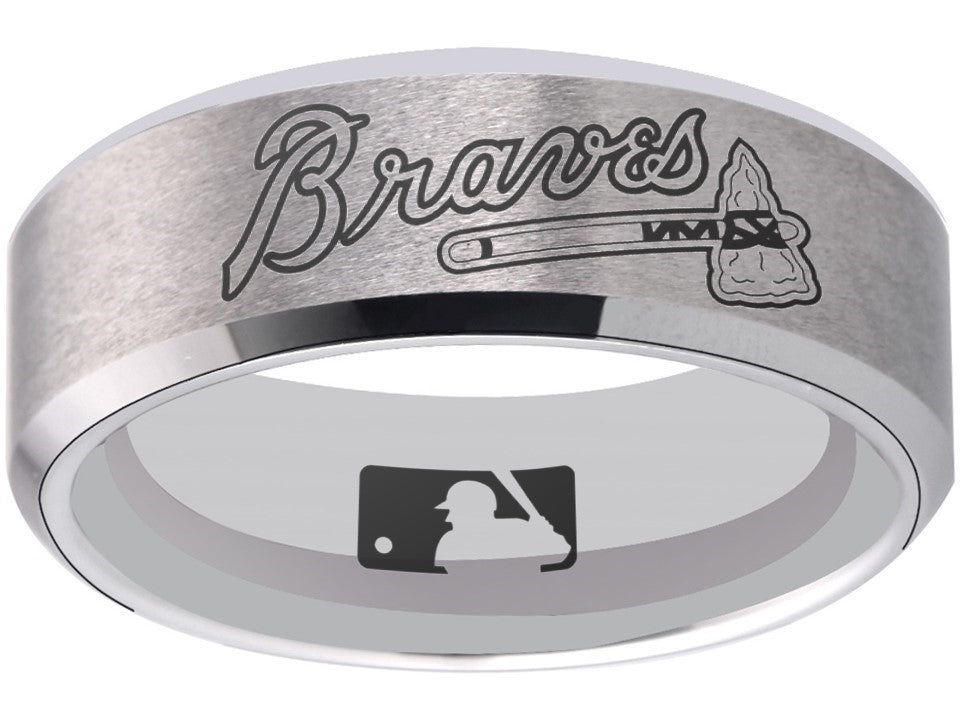 Atlanta Braves Ring matte Silver Tungsten Wedding Ring Sizes 6 - 13 #braves