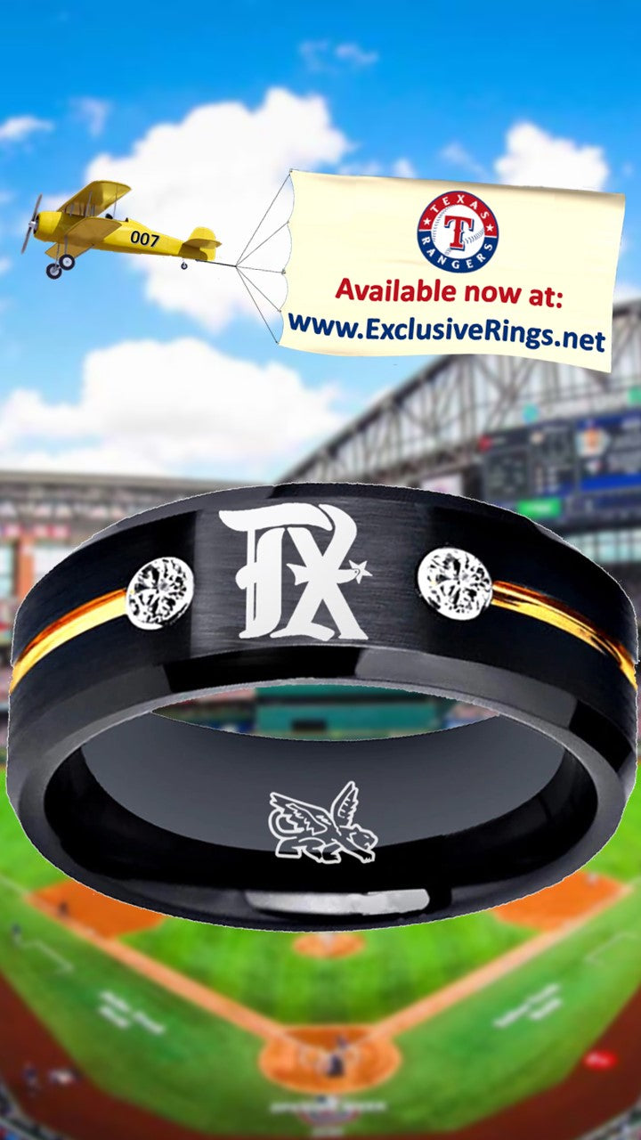 Texas Rangers Ring City Connect Black and Gold CZ Wedding Band Style | Sizes 6-13 #texasrangers #mlb