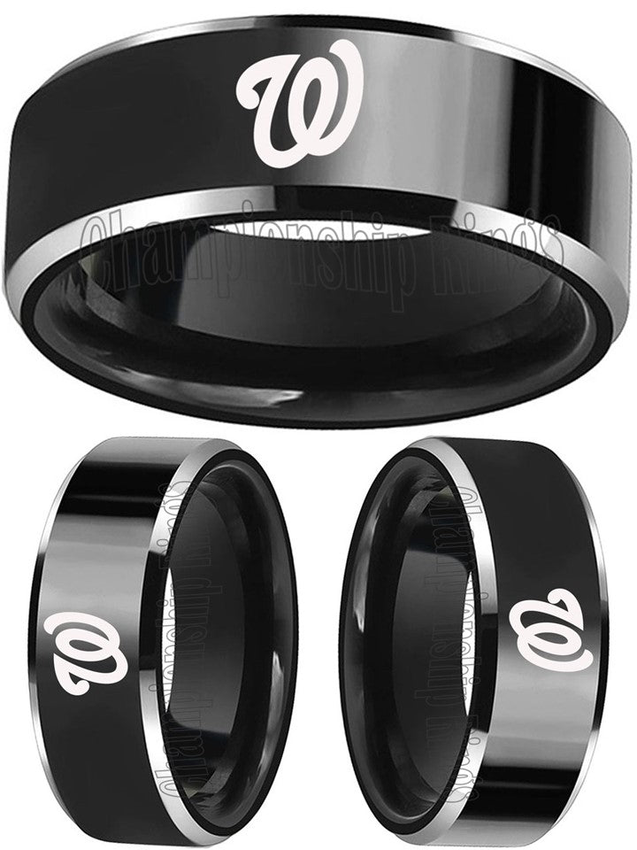 Washington Nationals Ring Tungsten Band 8mm Silver Wedding Ring Sizes 5 - 15 NEW