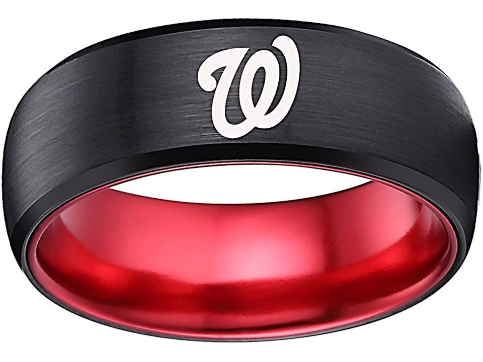 Washington Nationals Ring Tungsten Band 8mm Black & Red Ring #national – Exclusive Inspirations
